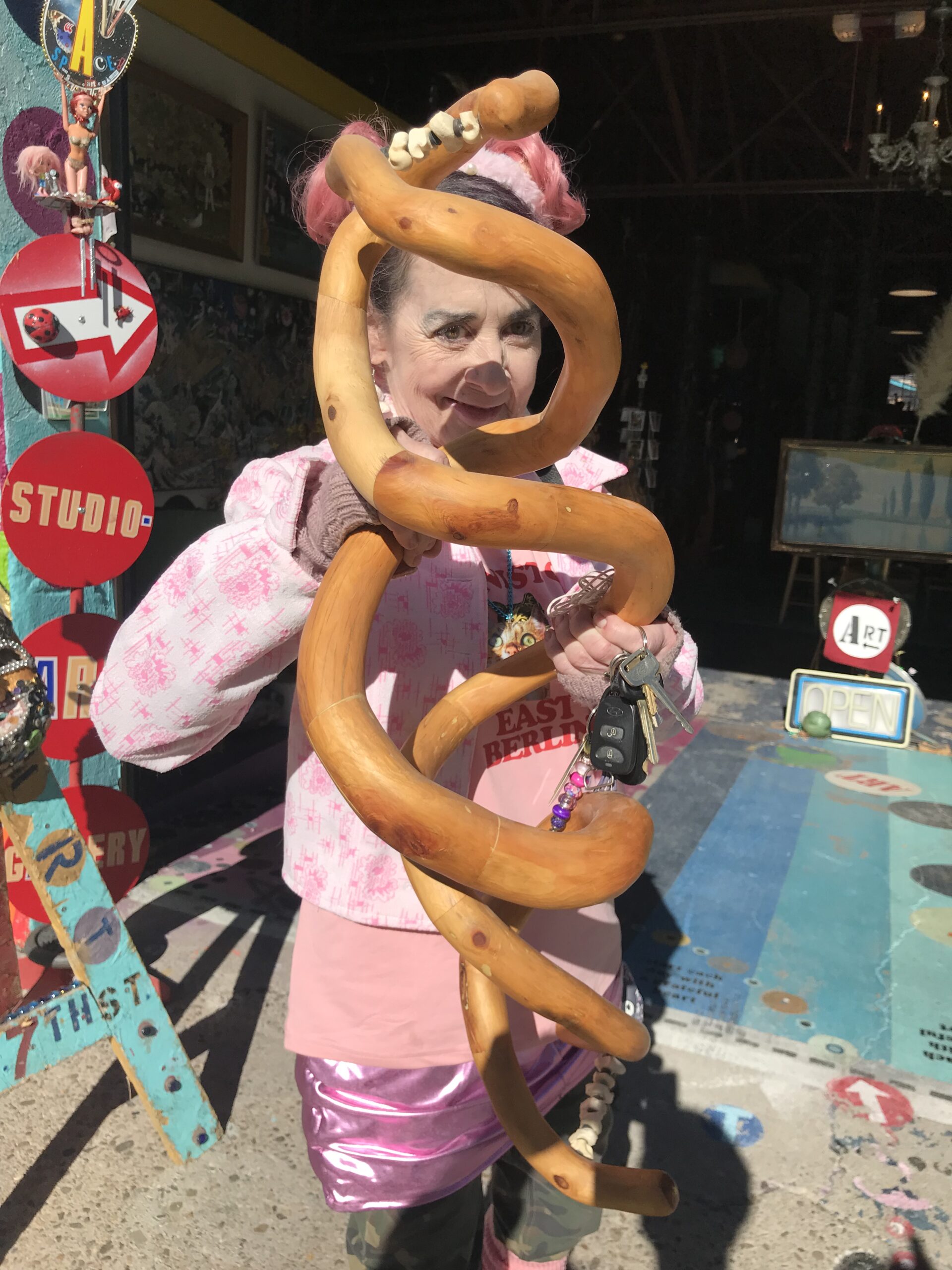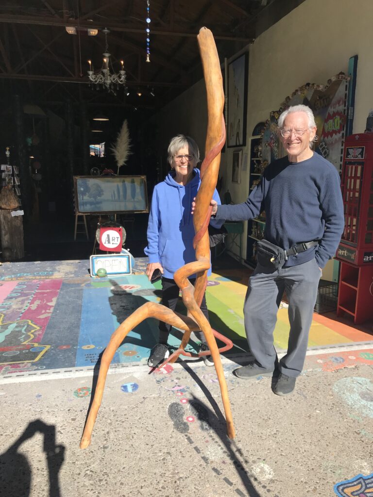 But one fun development is regarding Kelly’s wood sculpture, which has been on display at A-Space Gallery in Silver City for many years. Kelly got a notice from the owner of the gallery that he wanted Kelly to remove all of his work (about ten items) to make room for new work he was expecting. Kelly agreed that this was appropriate, especially since it had not been selling lately.